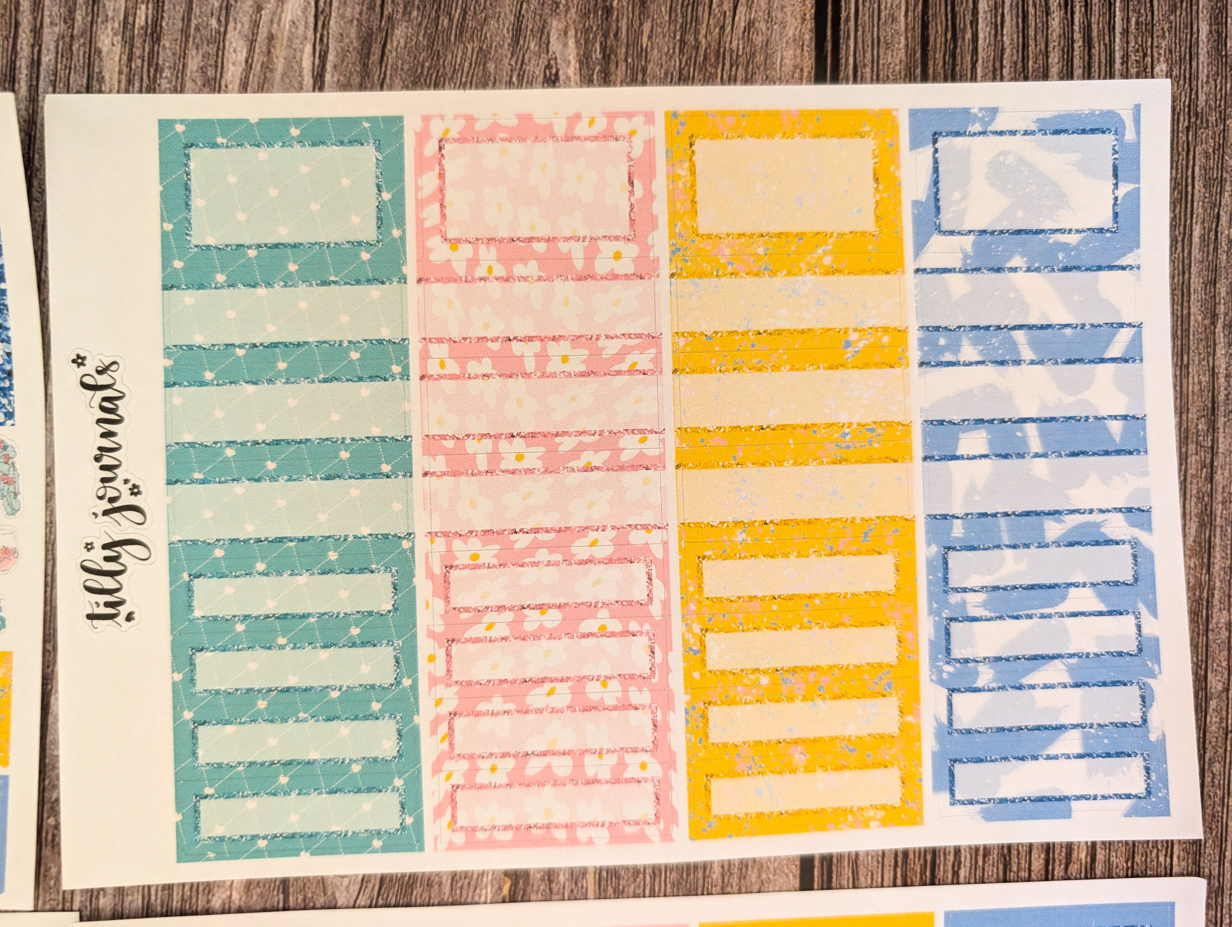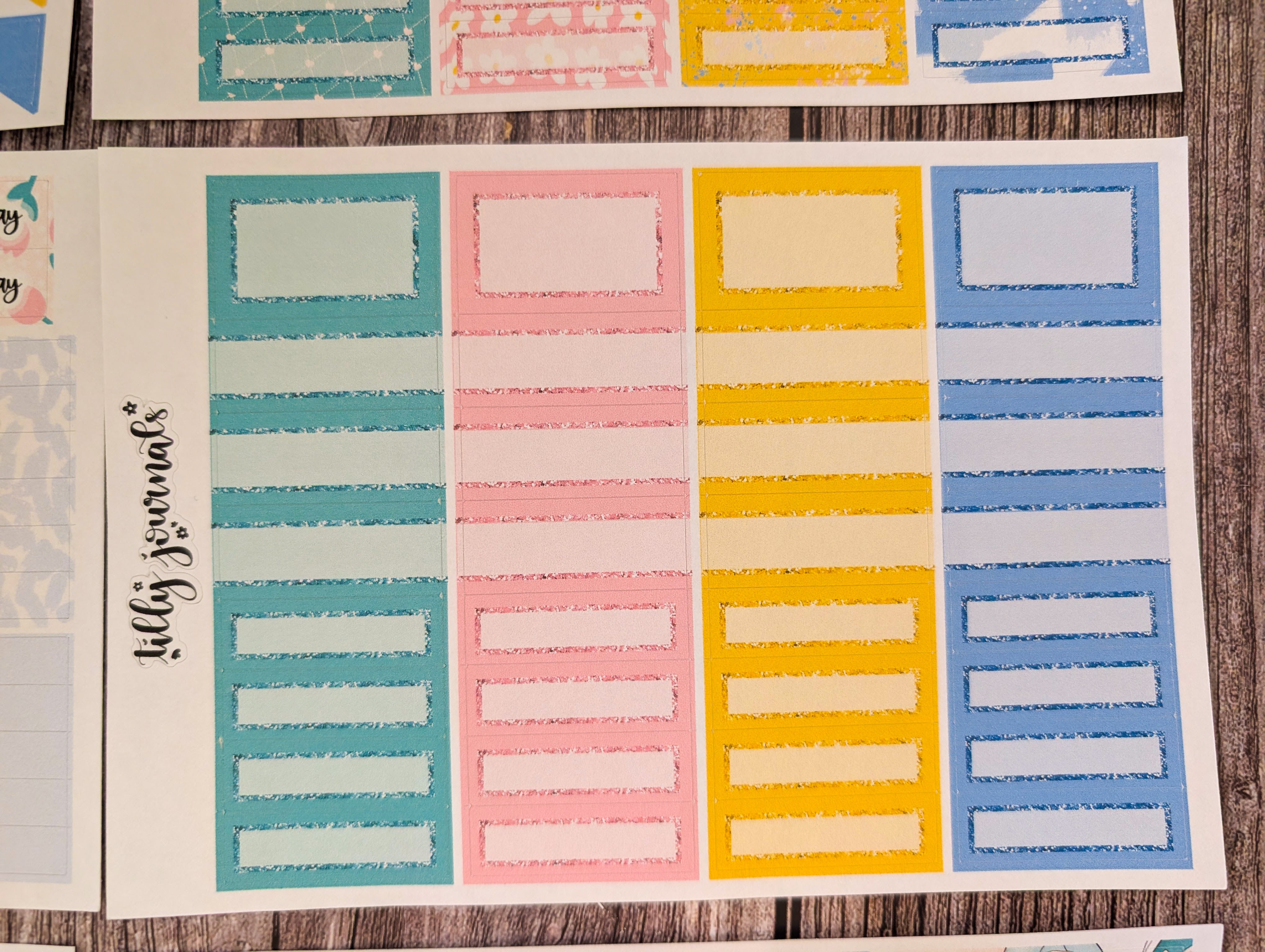 This is a planner kit that is perfect for Standard Vertical or B6 planners, and is available in removable or premium matte. These kits are designed with a 1.5inch column in mind, but can be used in any planner. Each kit has 7 pages that are broken down as follows: